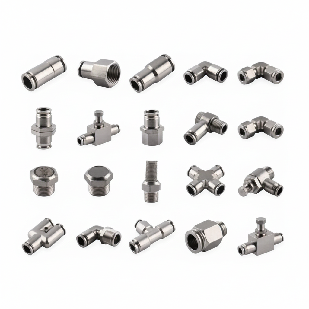 High-strength stainless steel fittings for securing temperature sensors in industrial applications.